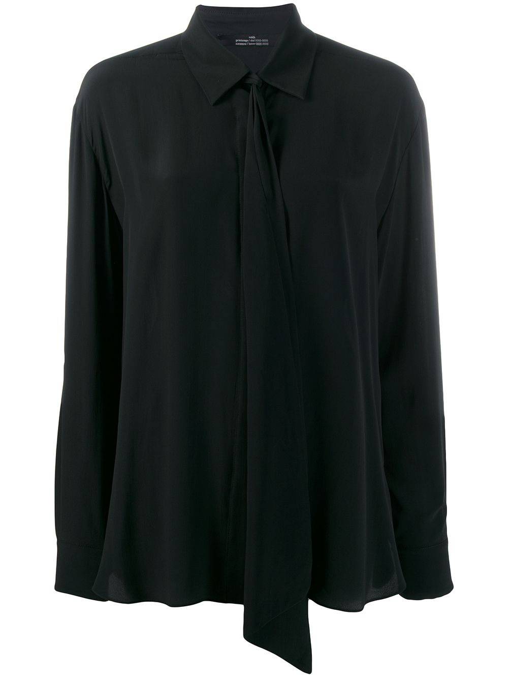 tie neck shirt Black silk blend tie neck shirt from ROKH featuring a classic collar, long sleeves and a straight hem. Imported Composition Acetate 79%, Silk 21% SIZE & FIT Model measurements Height 5 ft 10 in(1.77 m) Bust/Chest 35.03 in(89 cm) Hips 35.03 in(89 cm) Waist 23.62 in(60 cm) FittingInformation This piece fits true to size. We recommend you get your regular size Cut for a loose fit Made with a lightweight non-stretch fabric Washing instructions Dry Clean Only