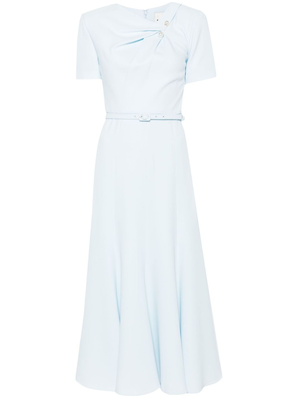 belted cady midi dress Highlights - Light blue - Concealed rear hook and zip fastening - Full lining - Dart detailing - Flared hem Imported Composition Outer: Acetate 60%, Polyester 40% Lining: Polyester 100% SIZE & FIT Model measurements Height 5 ft 9 in(1.75 m) Bust/Chest 34.64 in(88 cm) Hips 36.61 in(93 cm) Waist 26.37 in(67 cm) FittingInformation Designed for a close fit at the chest and waist with a loose fit at the hip The belt offers adjustability for fitted preferences Made from a midweight non-stretch fabric