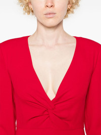 cady gown Highlights - Ruby red - Cady texture - Knot detailing - Dart detailing - V-neck - Concealed rear hook and zip fastening - Detachable shoulder pads - Long sleeves - Cuff zips - Fitted waistline - Rear slit - Straight hem - Floor-length - Partial lining Imported Composition Outer: Acetate 70%, Polyester 30% Lining: Polyester 100% SIZE & FIT Model measurements Height 5 ft 9 in(1.75 m) Bust/Chest 34.64 in(88 cm) Hips 36.61 in(93 cm) Waist 26.37 in(67 cm) Measurement SLEEVE LENGTH 24.4 in(62 cm) HIPS 40.15 in(102 cm) LENGTH 61.02 in(155 cm) WAIST 31.49 in(80 cm) FittingInformation Designed for a slim fit that sits just away from the body offering a close yet comfortable fit The internal shoulder pads offer a structured shape Made from a midweight non-stretch fabric This piece fits true to size – take your usual size Washing instructions Dry Clean Only