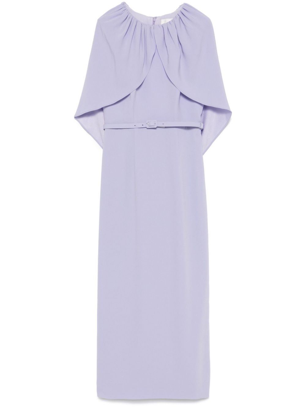 cape crepe midi dress Highlights - Lavender purple - Concealed rear hook and zip fastening - Detachable and adjustable waist belt - Dart detailing - Rear slit Imported Composition Lining: Polyester 100% Outer: Acetate 75%, Polyester 25% SIZE & FIT Model measurements Height 5 ft 10 in(1.77 m) Bust/Chest 32.28 in(82 cm) Hips 35.03 in(89 cm) Waist 25.19 in(64 cm) FittingInformation Designed for a slim fit that sits just away from the body offering a close yet comfortable fit The internal shoulder pads offer a structured shape Made from a midweight non-stretch fabric