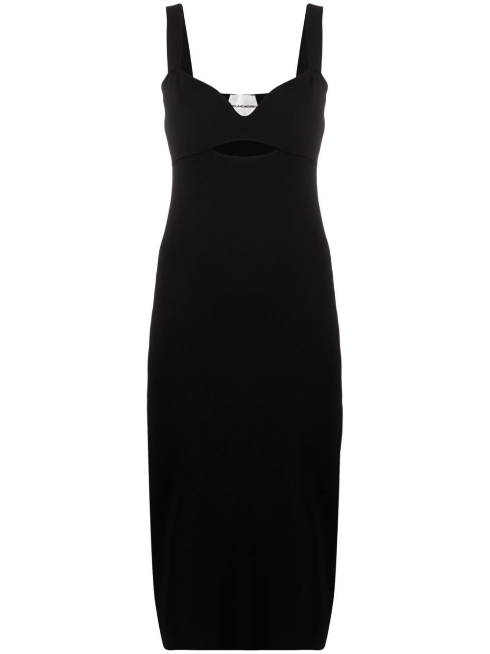 cut-out knitted midi dress Roland Mouret takes a classic approach with this knitted dress for the AW23 collection. Presented in black, it comes in a fitte silhouette enhanced with a sweetheart neckline and a cut-out detail at the front. The midi length adds sophistication to the design. Highlights - Black - Stretch-design - Knitted construction - Wide shoulder straps - Sweetheart neck - Cut-out detailing - Straight hem - Below-knee length Imported Composition Viscose 71%, Polyester 14%, Polyamide 14%, Spandex/Elastane 1% SIZE & FIT Model measurements Height 5 ft 10 in(1.78 m) Bust/Chest 30.7 in(78 cm) Hips 34.64 in(88 cm) Waist 23.22 in(59 cm) FittingInformation Designed for a slim fit that sits just away from the body offering a close yet comfortable fit Made with a midweight knit, this piece offers some stretch This piece fits true to size – take your usual size