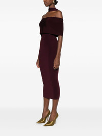halter-neck ruffled dress Highlights - Burgundy - Halter neck - Ruffled neckline - Off-the-shoulder sleeves - Midi length Imported Composition Outer: Viscose 74%, Polyamide 23%, Elastane 3% SIZE & FIT Model measurements Height 5 ft 10 in(1.78 m) Bust/Chest 31.49 in(80 cm) Hips 37 in(94 cm) Waist 23.62 in(60 cm) Washing instructions Dry Clean Only