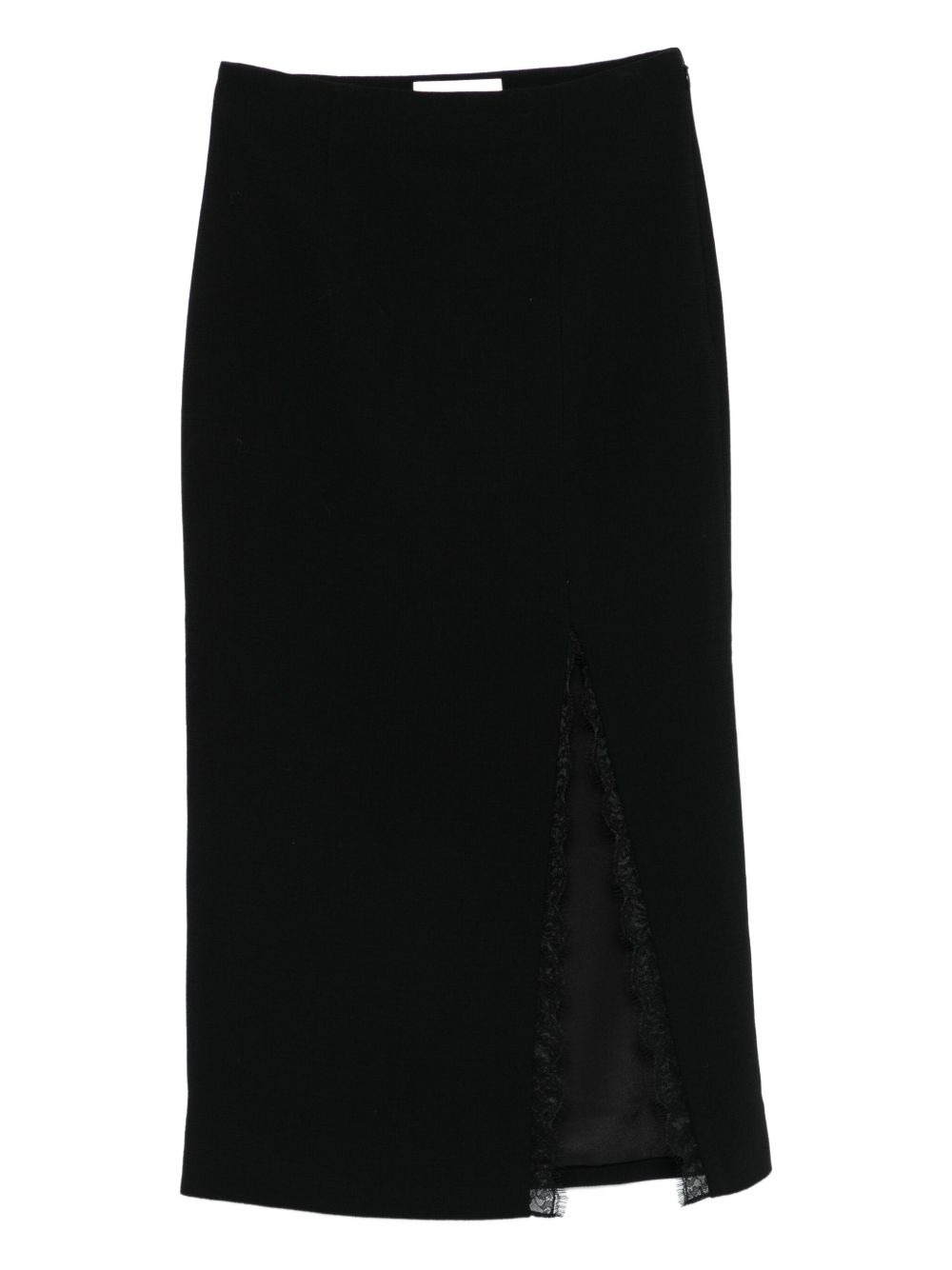 lace-insert pencil skirt Highlights - Black - Pencil shape - Lace detail - Side split - Wool - Straight hem Imported Composition Outer: Wool 100% Lining: Polyamide 100%, Polyester 100% Washing instructions Dry Clean Only