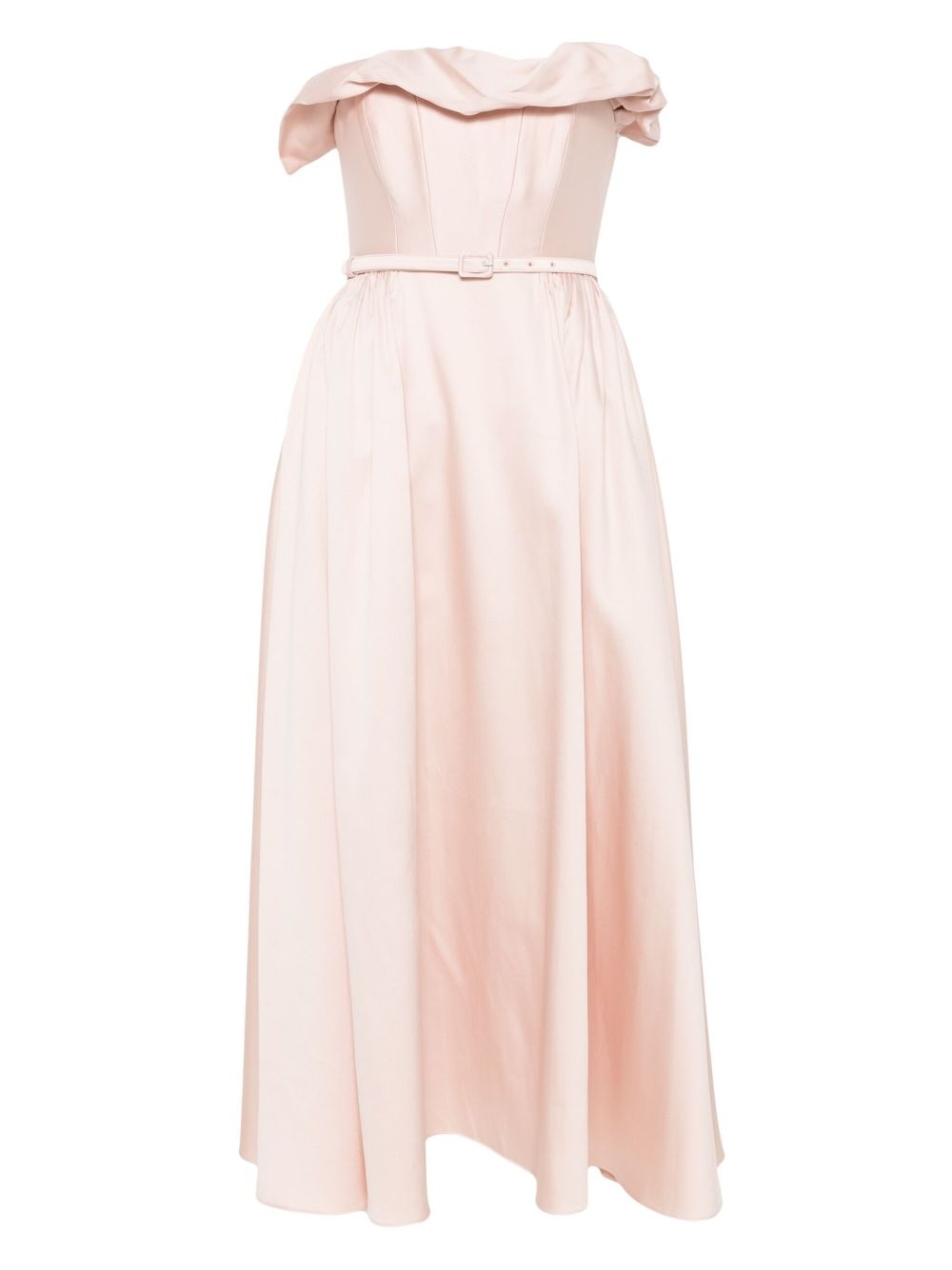 ruffle midi dress Highlights - Light pink - Concealed rear hook and zip fastening - Rear hook fastening - Two side inset pockets - Detachable waist belt Imported Composition Outer: Polyester 86%, Silk 14% Lining: Polyester 100% SIZE & FIT Model measurements Height 5 ft 10 in(1.77 m) Bust/Chest 32.28 in(82 cm) Hips 35.03 in(89 cm) Waist 25.19 in(64 cm) Measurement HIPS 51.96 in(132 cm) LENGTH 45.27 in(115 cm) WAIST 25.98 in(66 cm) FittingInformation Designed for a close fit at the chest and waist with a loose fit at the hip The belt offers adjustability for fitted preferences Made from a midweight non-stretch fabric