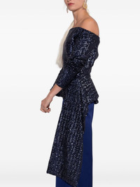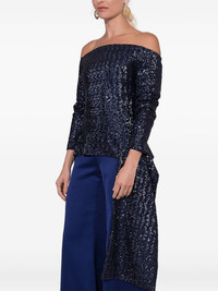 sequin-embellished off-shoulder top Highlights - Navy blue - Sequin embellishment - Off-shoulder neckline - Long sleeves - Asymmetrical hem - Zip fastening Made in United Kingdom Composition Outer: Polyester 100%, Sequin 100% Lining: Acetate 65%, Silk 25% Washing instructions Read Manufacturer Guidelines