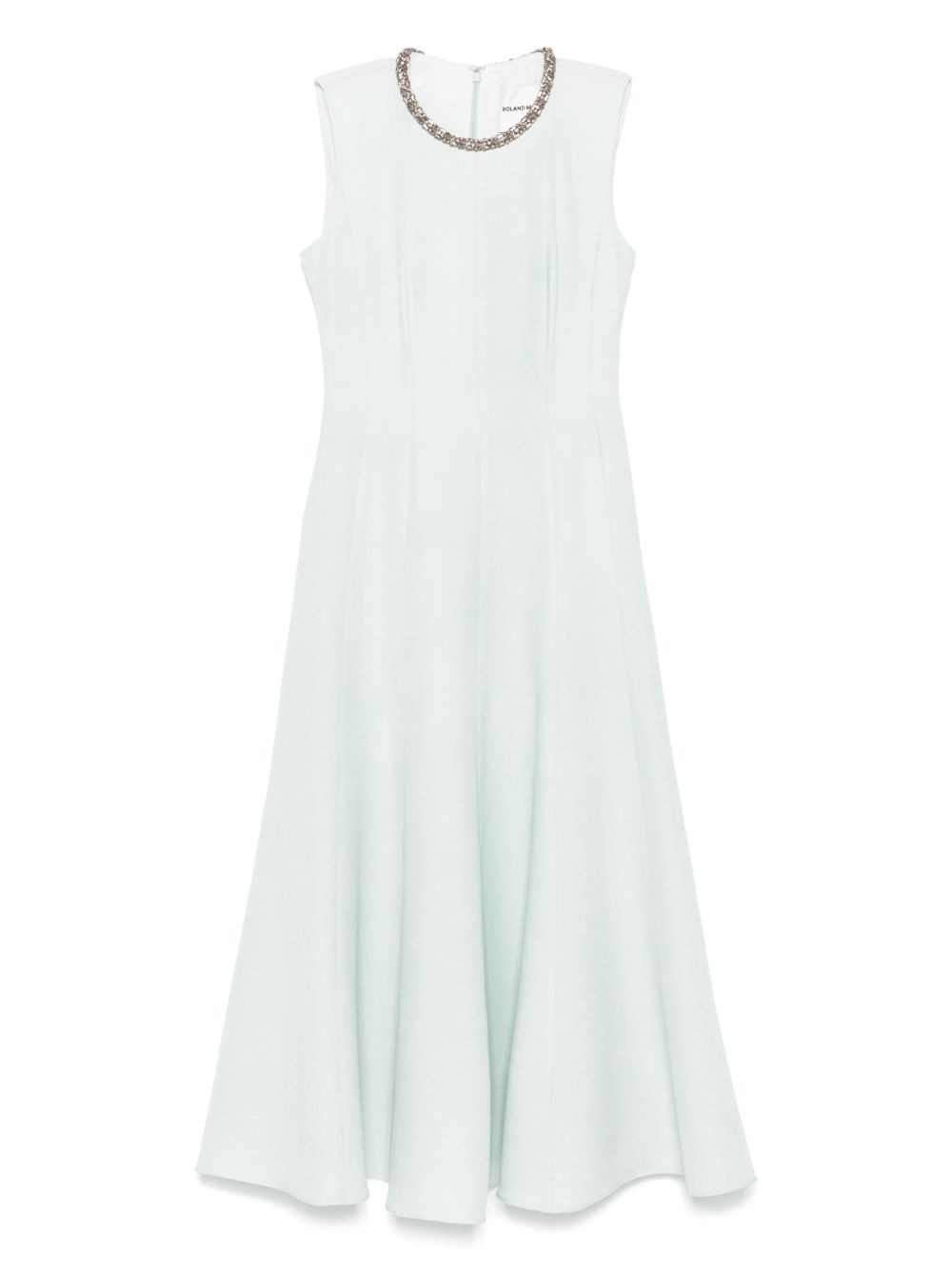 sleeveless dress Highlights - Mint green - Crystal embellishment - Sleeveless - A-line skirt - Round neck Imported Composition Outer: Wool 62%, Silk 38% Lining: Polyester 100% SIZE & FIT Model measurements Height 5 ft 10 in(1.78 m) Bust/Chest 31.49 in(80 cm) Hips 37 in(94 cm) Waist 23.62 in(60 cm) FittingInformation Designed for a close fit at the chest and waist with a loose fit at the hip Made from a midweight non-stretch fabric, this piece offers minimal elasticity when worn