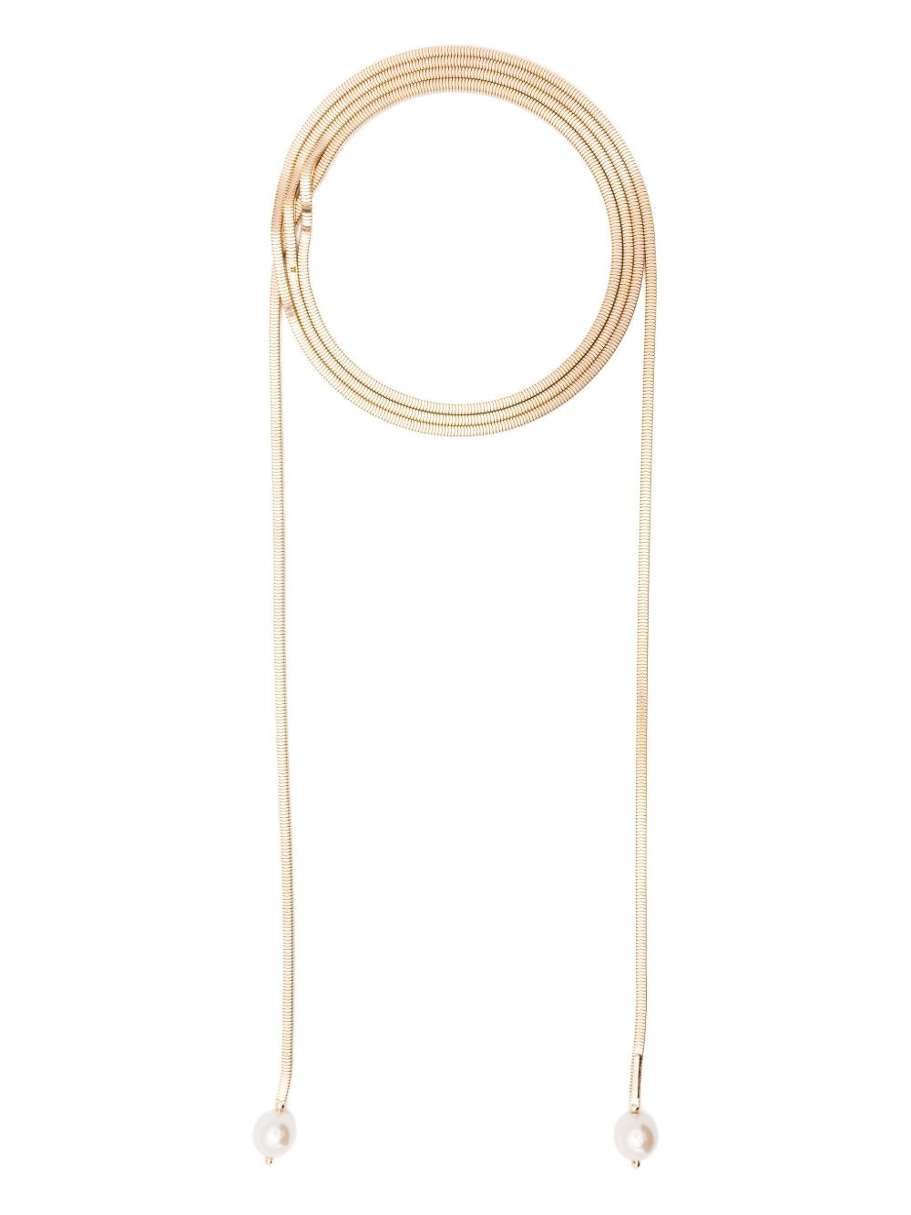 embellished necklace Highlights - Gold-tone - Bead pendants - Stackable design Imported SIZE & FIT Measurement Length when open 72.83 in(185 cm) WIDTH 0.15 in(0.4 cm)