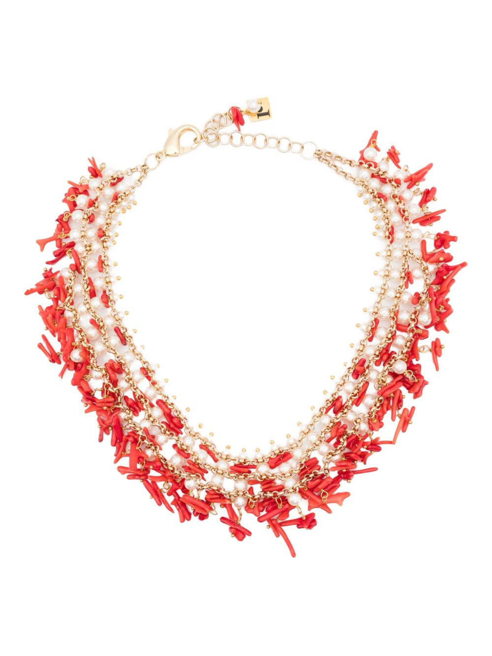 embellished necklace Highlights - Gold-tone - Chain - Red and white embellishments - Lobster claw fastening - Normal everyday use and external agents may reduce the lustre of gemstones and gold surfaces. to maintain, use specific, non-abrasive products specially meant for cleaning jewellery. Made in Italy SIZE & FIT Measurement Length when open 17.71 in(45 cm) WIDTH 1.18 in(3 cm)