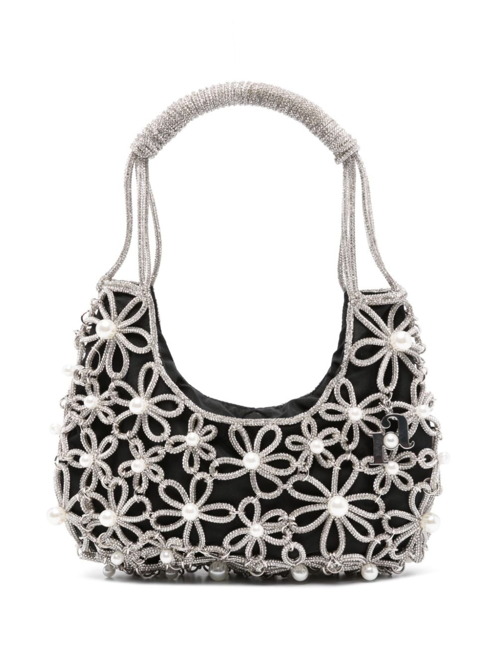 Gaia Nodi crystal-embellished shoulder bag Renowned for its sparkling accessories, Rosantina introduces the Gaia Nodi bag. Decorated with floral crystal embellishments and faux pearls, it captures the label's glamorous aesthetic. Highlights - Black/silver-tone - Floral detail - Crystal embellishment - Faux-pearl detailing - Single top handle - Open top - Main compartment Made in Italy Composition Outer: Polyurethane 100% SIZE & FIT Model measurements Height 5 ft 10 in(1.77 m) Bust/Chest 29.92 in(76 cm) Hips 34.25 in(87 cm) Waist 23.62 in(60 cm) Measurement DEPTH 1.96 in(5 cm) HANDLE 5.51 in(14 cm) HEIGHT 7.08 in(18 cm) WIDTH 9.84 in(25 cm)