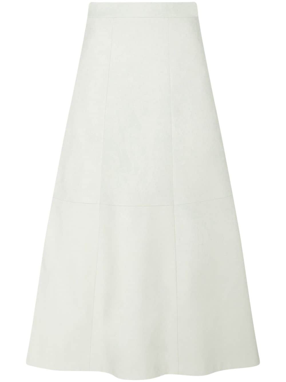 A-line leather skirt Highlights - Off-white - Lambskin - A-line - Elasticated waistband - Pull-on style - Straight hem - Maxi Made in United States Composition Lining: Cotton 98%, Spandex/Elastane 2% Outer: Lambskin 100%