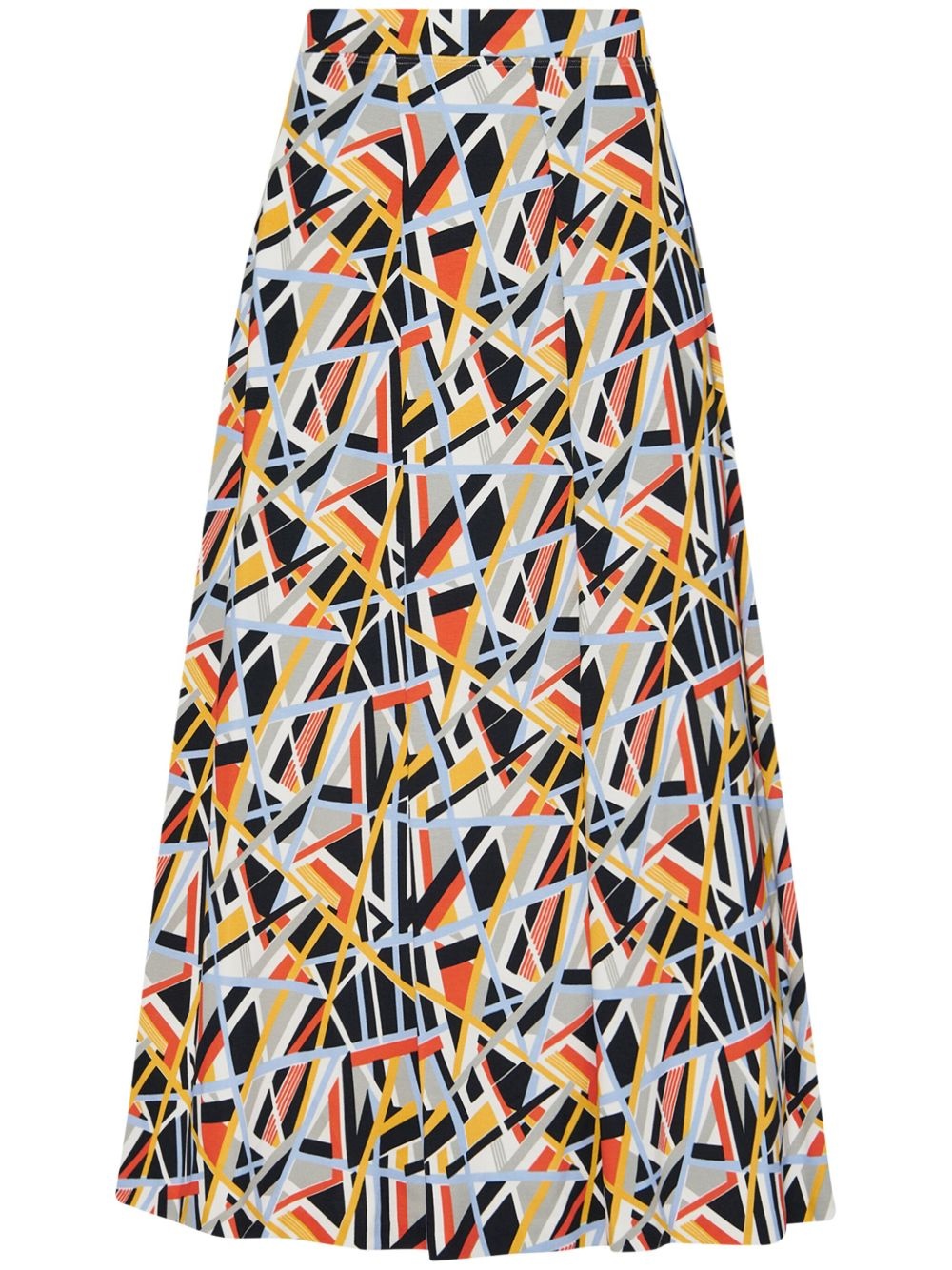 abstract-print pleat-detail maxi skirt Highlights - Multicolour - Stretch-design - Abstract pattern print - Pleat detailing - Elasticated waistband - High-waisted - Straight hem - Pull-on style Made in United States Composition Viscose 95%, Elastane 5%