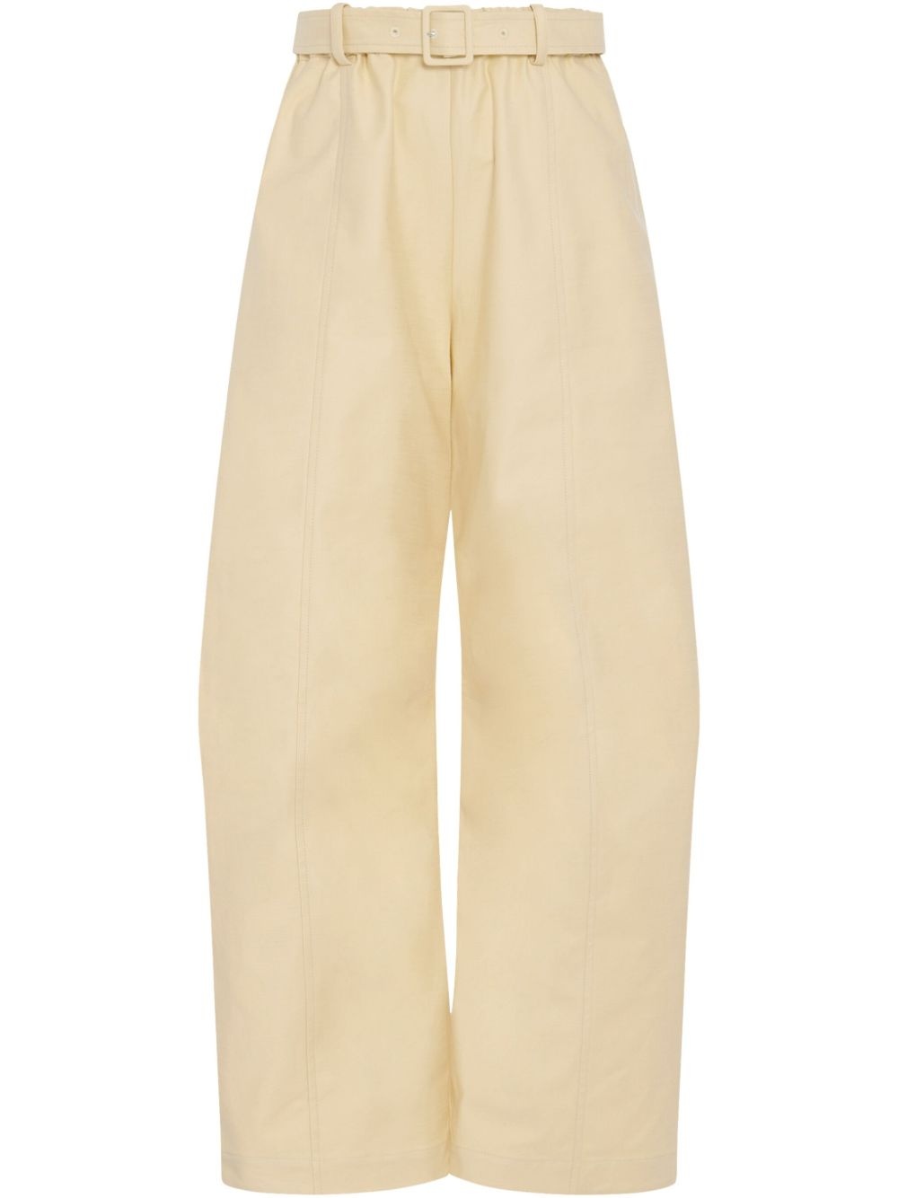 belted tapered trousers Highlights - Butter yellow - Elasticated waistband - Two side slash pockets - Rear jetted pocket - Belt loops Made in United States Composition Organic Cotton 97%, Polyurethane 3%