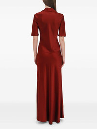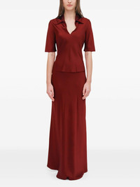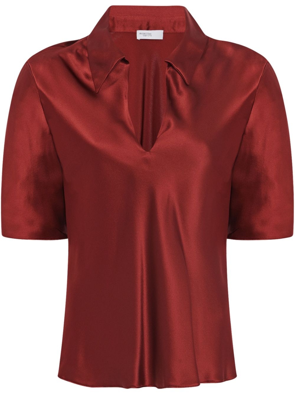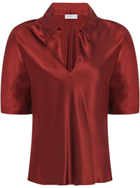 Silk Satin Polo Top red