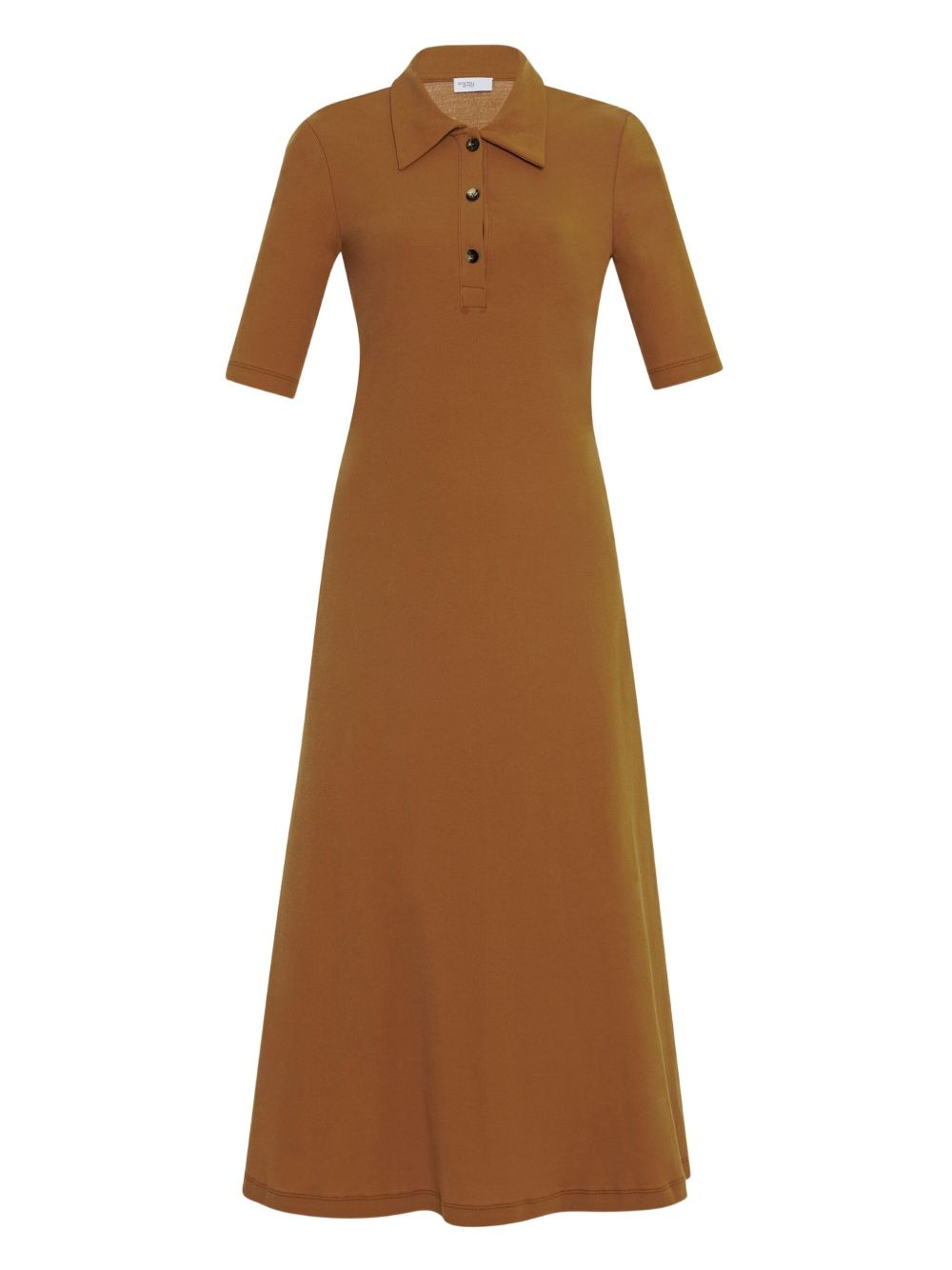button-up polo dress Highlights - Copper brown - Short sleeves - Polo collar - Button fastening - Midi length Imported Composition Organic Cotton 100% Washing instructions Read Manufacturer Guidelines