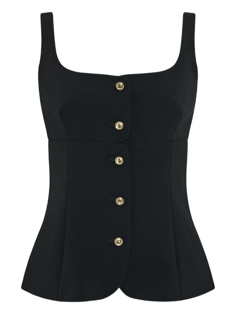 buttoned-up top Highlights - Black - Square neckline - Button detailing at front - Sleeveless design Imported Composition Polyester 89%, Polyurethane 11% Washing instructions Read Manufacturer Guidelines