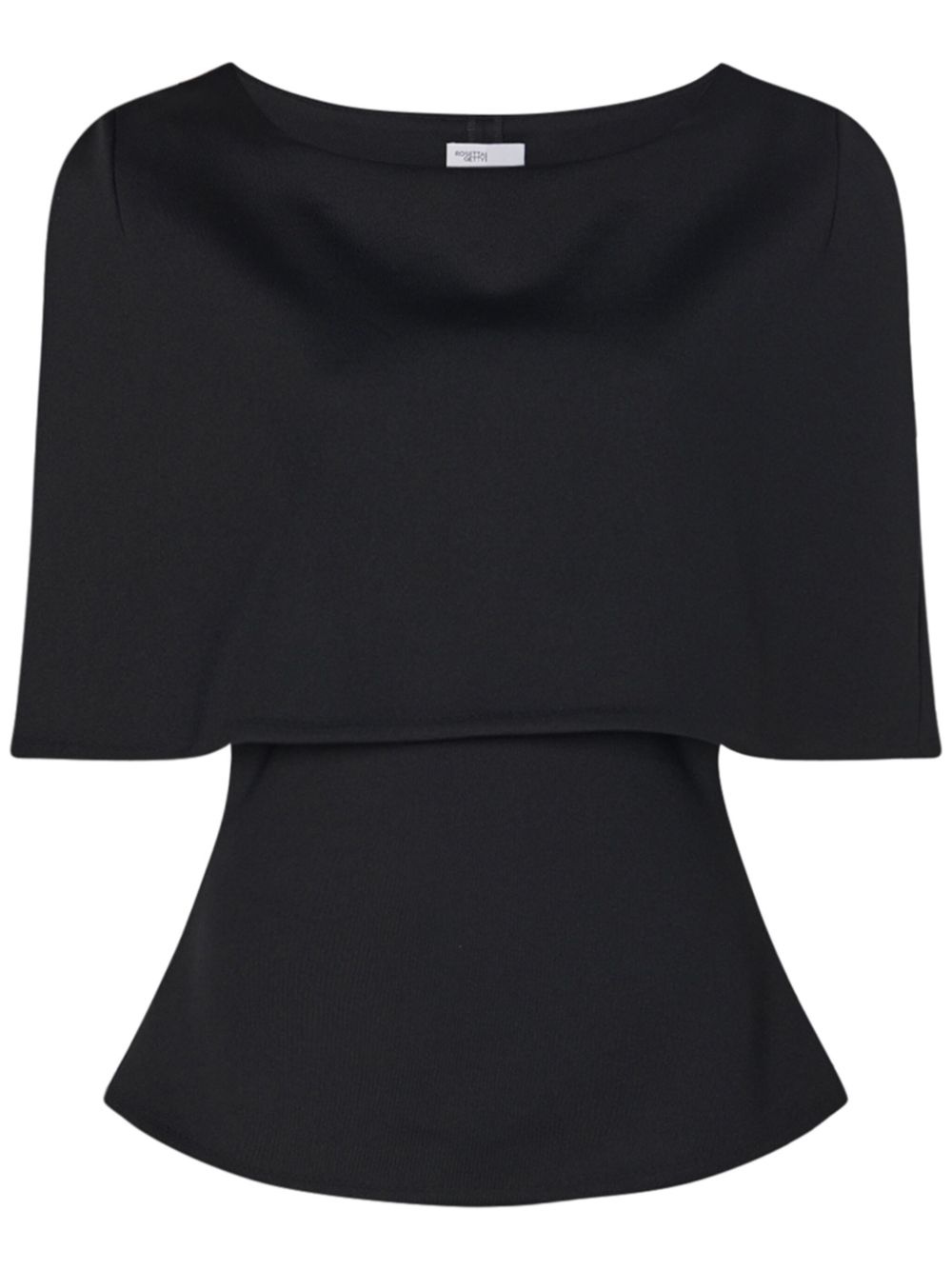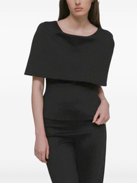 cape-design blouse Highlights - Black - Stretch-design - Cape design - Round neck - Layered details - Short draped sleeves - Fitted waistline - Straight hem Made in United States Composition Nylon 82%, Elastane 18%