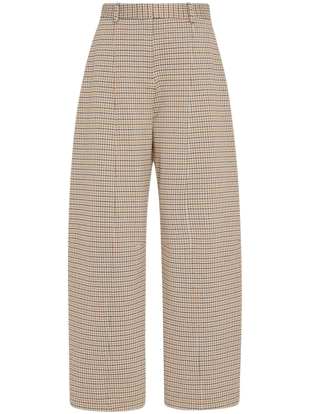 check-pattern trousers Highlights - Beige - Concealed front fastening - Belt loops - Two side inset pockets - Rear welt pocket Made in United States Composition Viscose 80%, Polyamide 14%, Elastane 6%
