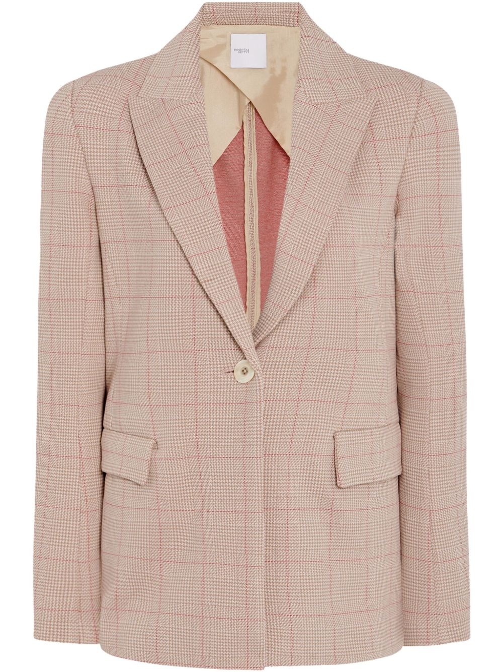 checked blazer Highlights - Sand beige - Front button fastening - Two front flap pockets - Peak lapels - Long sleeves Made in United States Composition Viscose 62%, Cotton 18%, Polyamide 14%, Elastane 6%