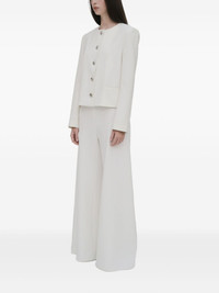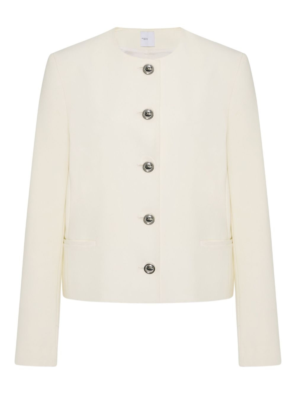 crew neck button-front jacket Highlights - White - Crew neck - Button front - Long sleeves - Straight hem - Cropped length Made in United States Composition Polyester 89%, Polyurethane 11% Washing instructions Read Manufacturer Guidelines