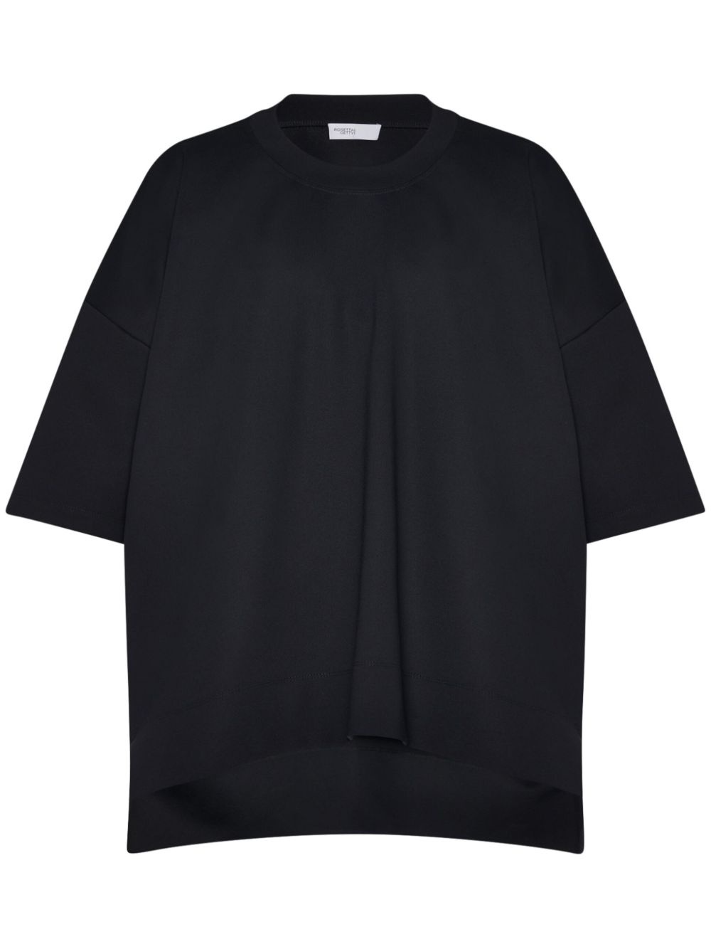 crew-neck drop-shoulder T-shirt Highlights - Jet black - Stretch-design - Draped detailing - Crew neck - Drop shoulder - Short sleeves - High-low hem Made in United States Composition Nylon 82%, Elastane 18%