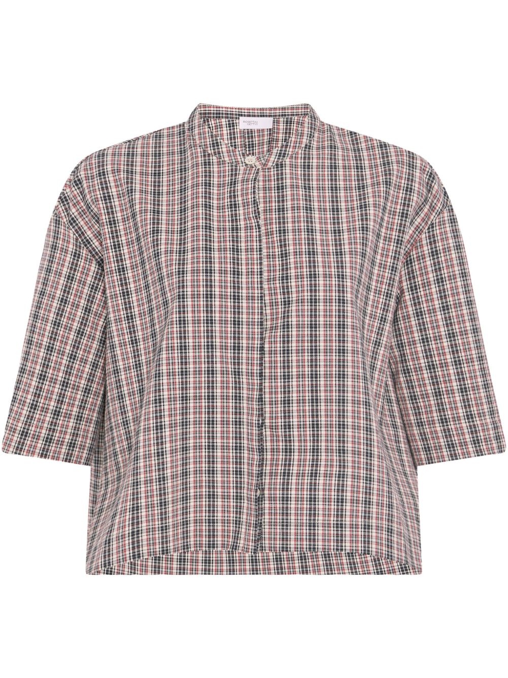 cropped shirt Highlights - Brick red - Concealed front button fastening - Check pattern - Band collar - Short sleeves Made in United States Composition Cotton 100%