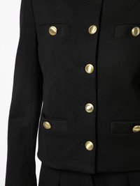 fitted button-down fastening jacket jet black round neck front button fastening long sleeves four welt pockets Made in United States Composition Body: Viscose 96%, Elastane 4% SIZE & FIT Model measurements Height 5 ft 10 in(1.78 m) Bust/Chest 33.46 in(85 cm) Hips 35.43 in(90 cm) Waist 24.4 in(62 cm) Washing instructions Dry Clean Only