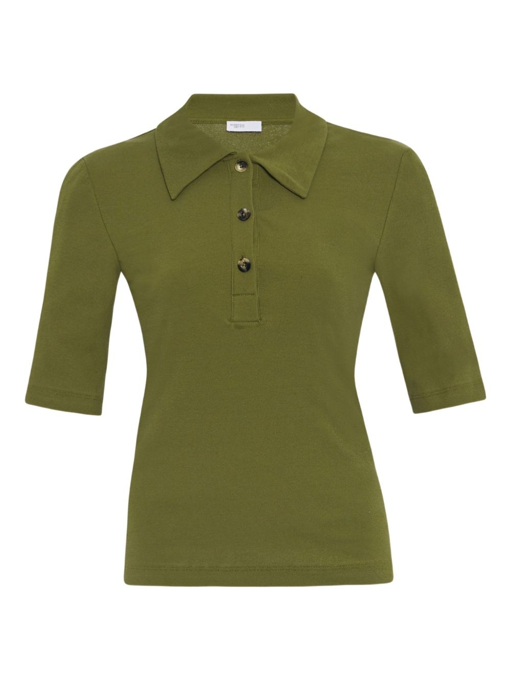 fitted polo top Highlights - Olive green - Button-front placket - Short sleeves - Ribbed texture - Straight hem Imported Composition Organic Cotton 100% Washing instructions Read Manufacturer Guidelines