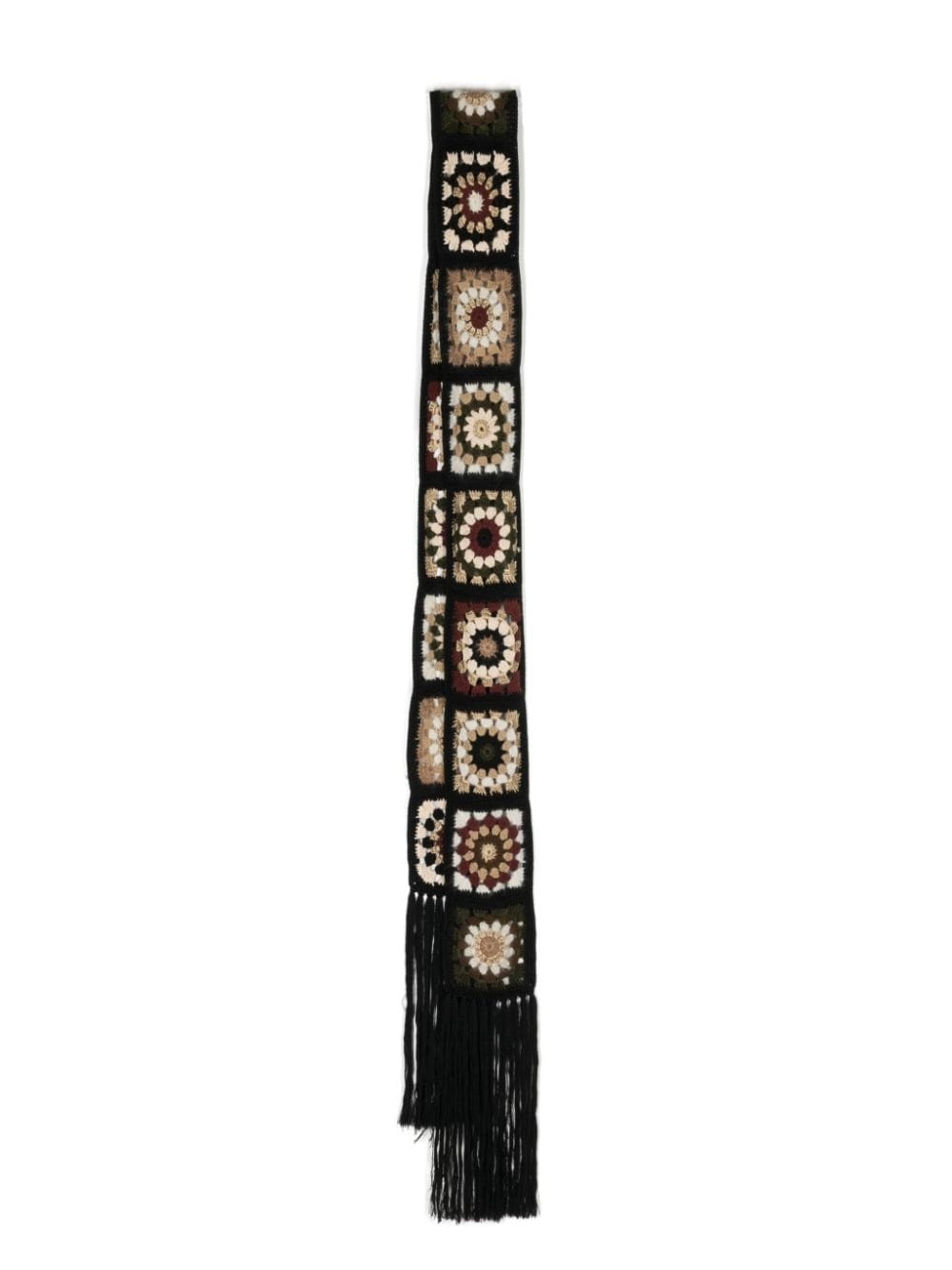 fringed crochet scarf Highlights - Black/multicolour - Wool - Crochet knit - Fringed edge Made in United States Composition Wool 100% SIZE & FIT Measurement LENGTH 129.13 in(328 cm) WIDTH 5.51 in(14 cm) Washing instructions Dry Clean Only