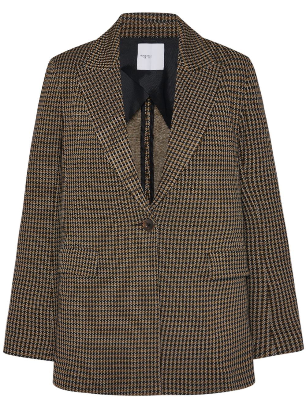 houndstooth-pattern peak-lapels blazer Highlights - Brown/black - Houndstooth pattern - Peak lapels - Front button fastening - Long sleeves - Two front flap pockets - Partial lining Made in United States Composition Viscose 81%, Polyamide 18%, Elastane 1%