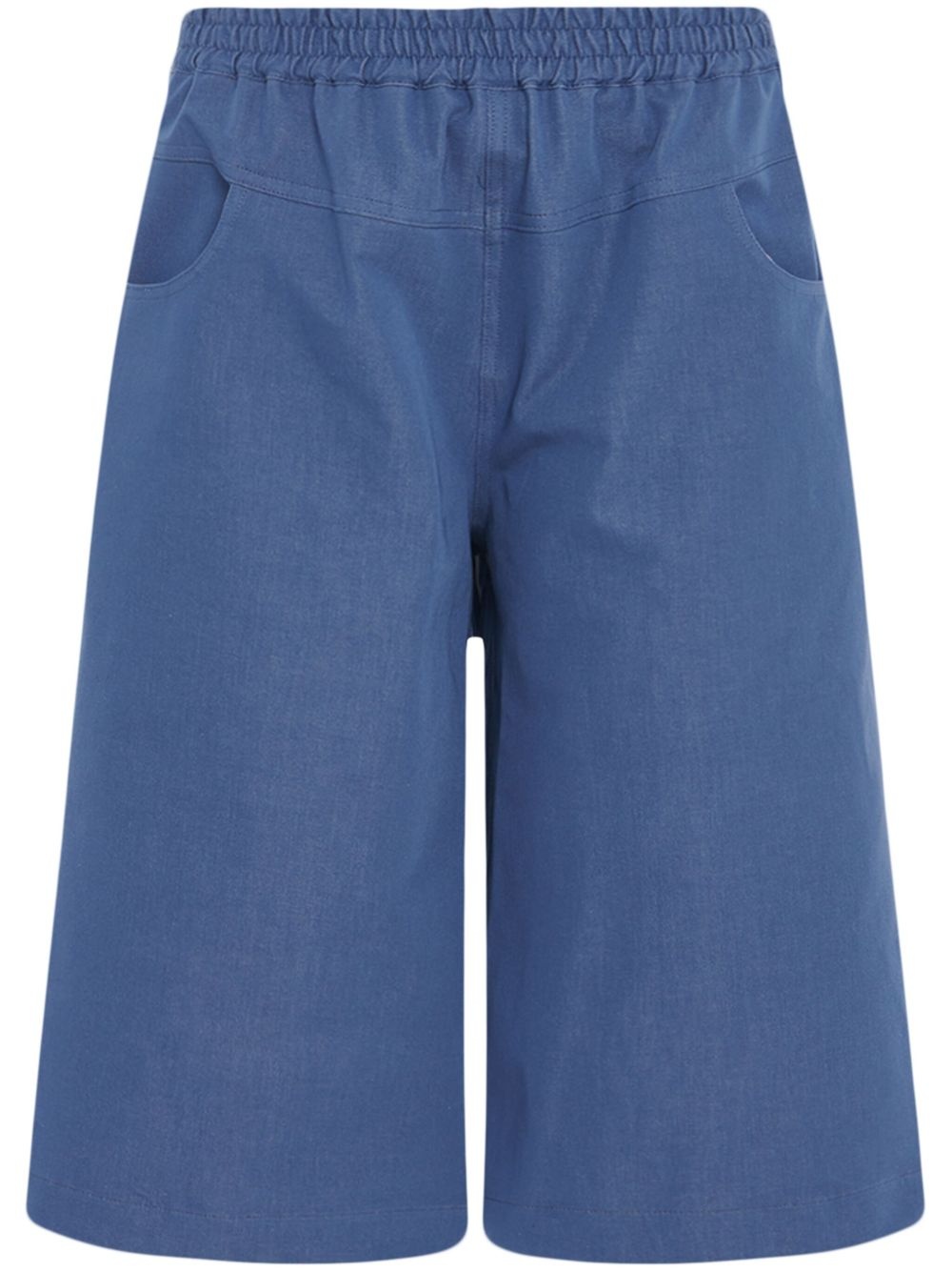 knee-length shorts Highlights - Cerulean blue - Elasticated waistband - Two rounded pockets to the sides - Two rear patch pockets Made in United States Composition Cotton 93%, Polyurethane 7%