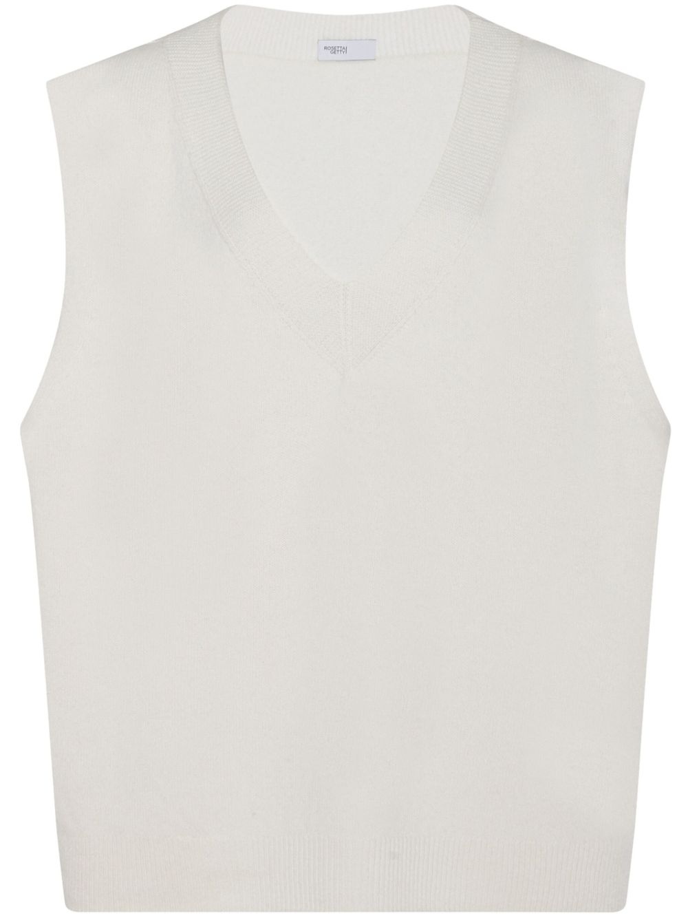 knitted vest Highlights - Ivory white - Wool-cashmere blend - Knitted construction - V-neck - Sleeveless - Straight hem Made in United States Composition Wool 90%, Cashmere 10%