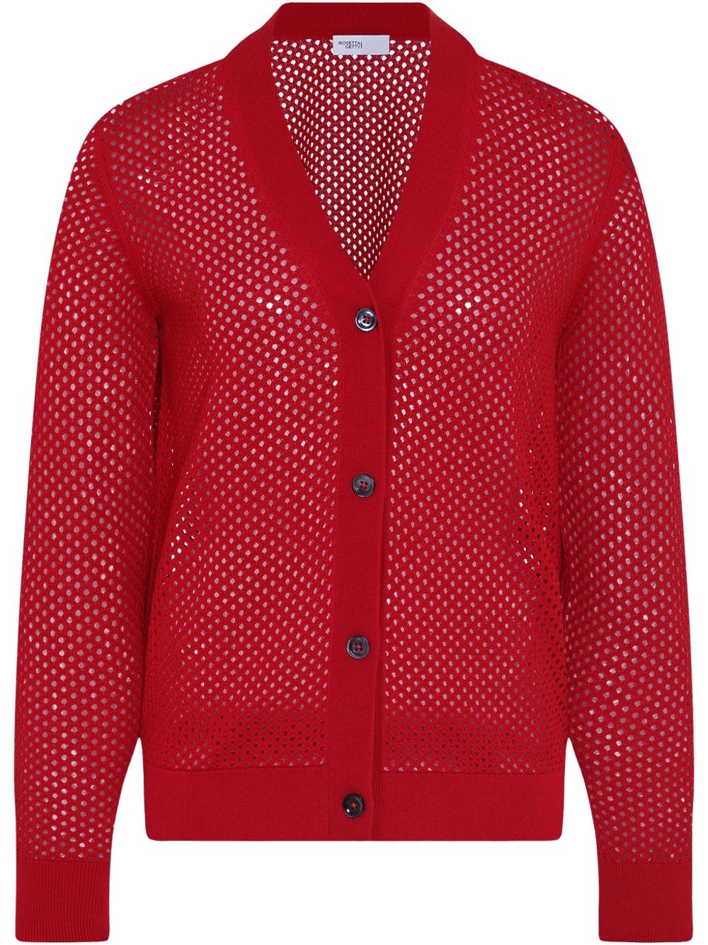 mesh pointelle cardigan Highlights - Red - Mesh design - Pointelle knit - Front button fastening - Long sleeves Imported Composition Cotton 53%, Acetate 47%