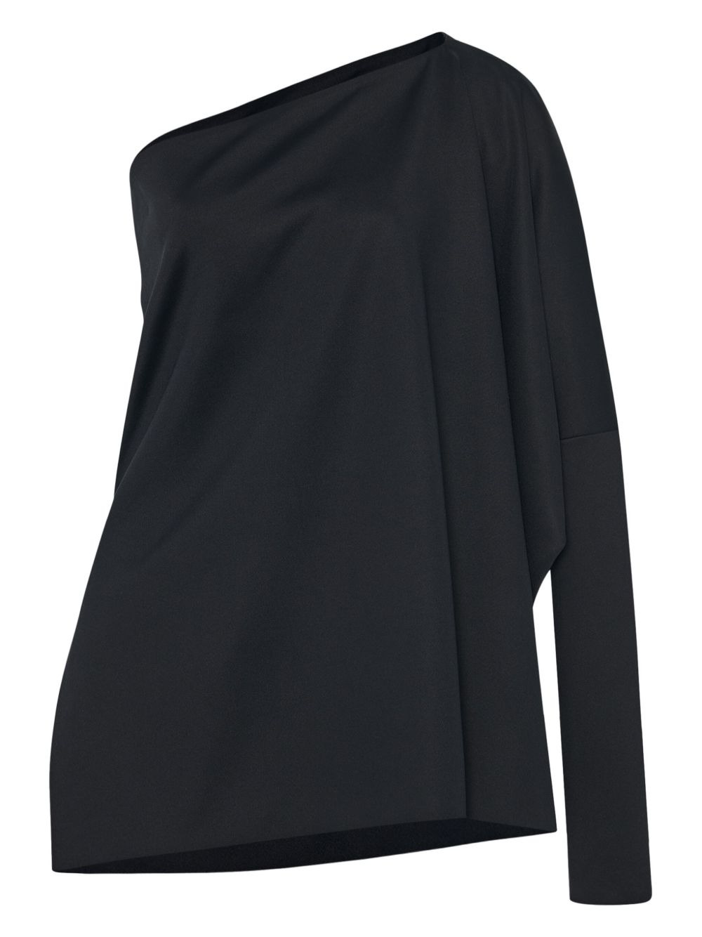 one-shoulder top Highlights - Black - One shoulder - Long sleeve - Asymmetric hem Made in United States Composition Body: Nylon 82%, Elastane 18% Washing instructions Dry Clean Only