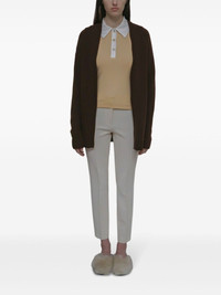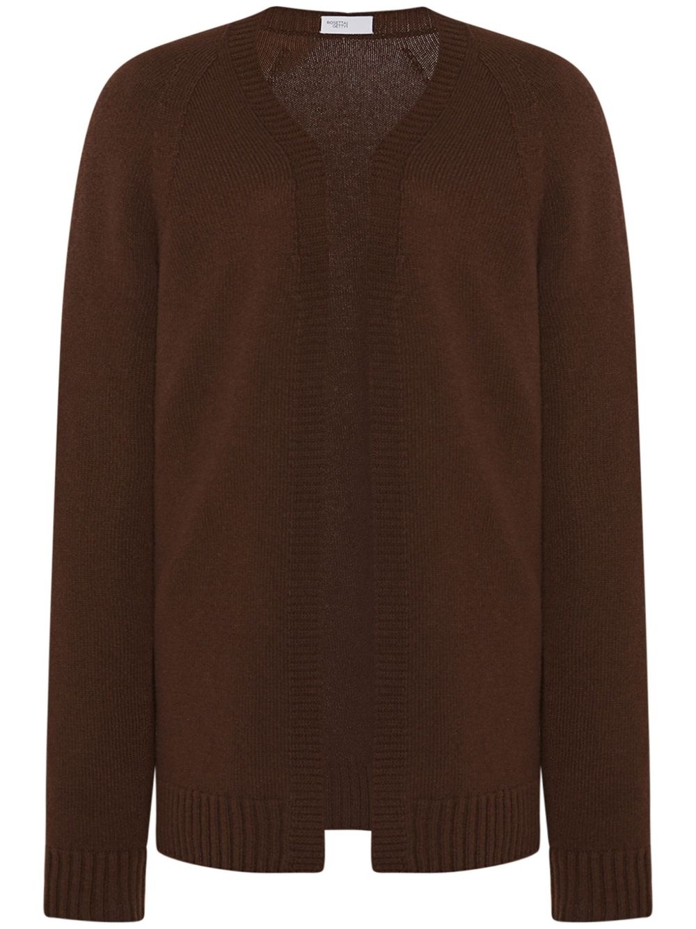 open-front cardigan Highlights - Brown - Wool-cashmere blend - Open front - Long sleeves - Collarless - Ribbed cuffs and hem - Straight hem Made in United States Composition Wool 90%, Cashmere 10%