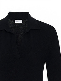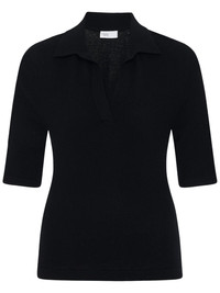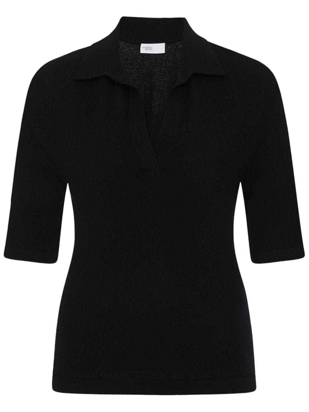 open-neck knitted polo top Highlights - Black - Wool-cashmere blend - Polo collar - V-neck - Short sleeves - Straight hem Imported Composition Body: Wool 70%, Cashmere 30%