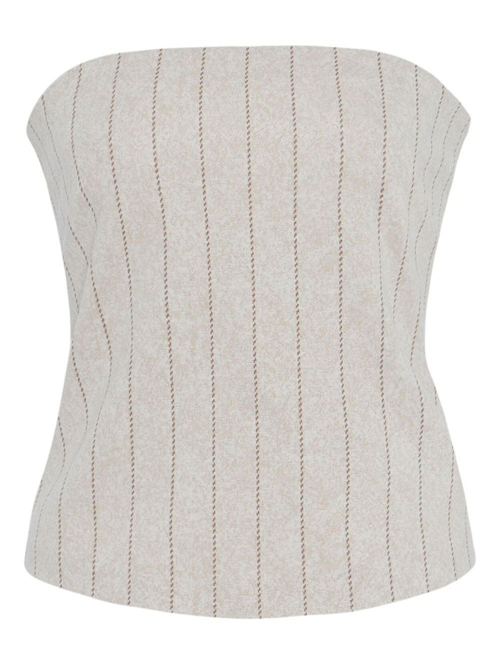 pinstripe bandeau top Highlights - Beige - Pinstripe pattern - Strapless design - Straight hem - Back zip fastening Made in United States Composition Viscose 82%, Polyamide 13%, Elastane 5% Washing instructions Read Manufacturer Guidelines