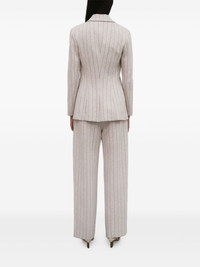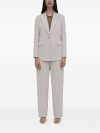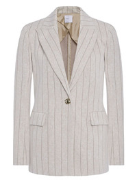 pinstriped tailored blazer Highlights - Light beige - Single-breasted front - Peak lapels - Front flap pockets - Contrasting interior lining - Button fastening Imported Composition Viscose 81%, Polyamide 18%, Elastane 1% Washing instructions Read Manufacturer Guidelines