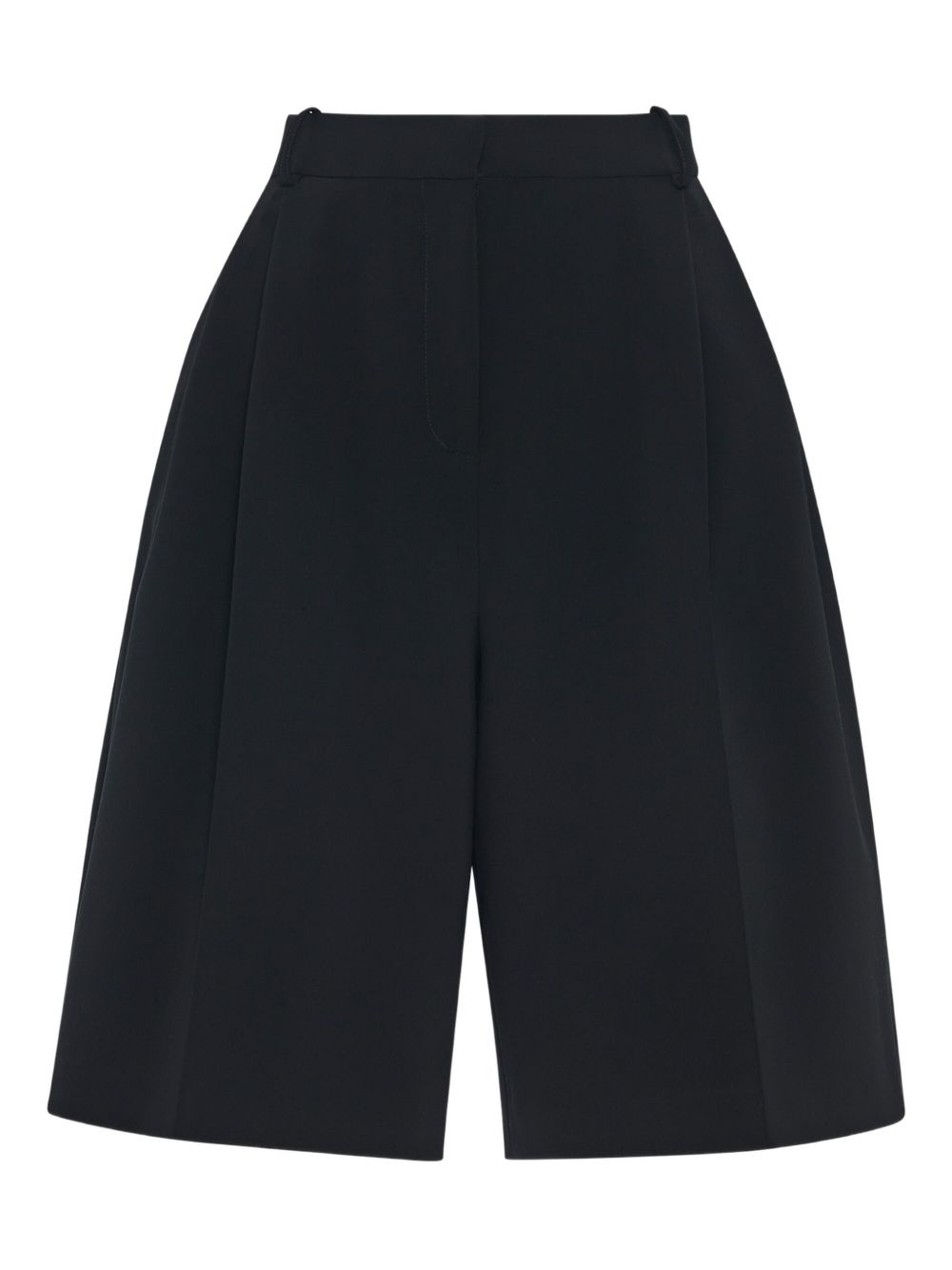 pleat-front shorts Highlights - Black - Wide pleats - High-waisted - Straight hem - Concealed front fastening Made in United States Composition Polyester 89%, Polyurethane 11% Washing instructions Read Manufacturer Guidelines
