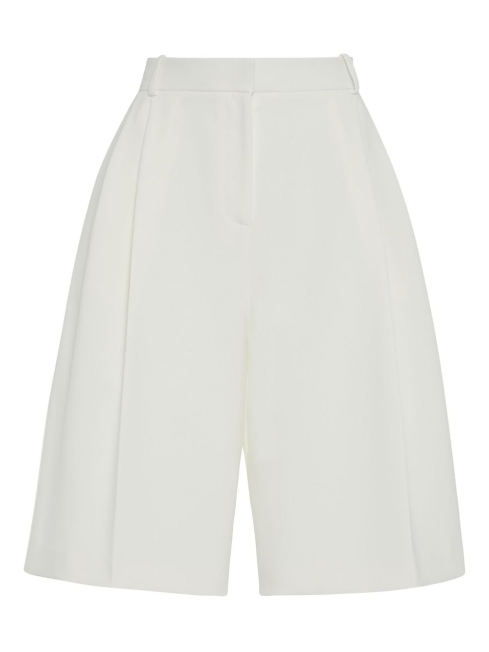pleat-front shorts Highlights - White - High-waisted - Straight hem - Concealed front fastening - Belt loops Made in United States Composition Polyester 89%, Polyurethane 11% Washing instructions Read Manufacturer Guidelines