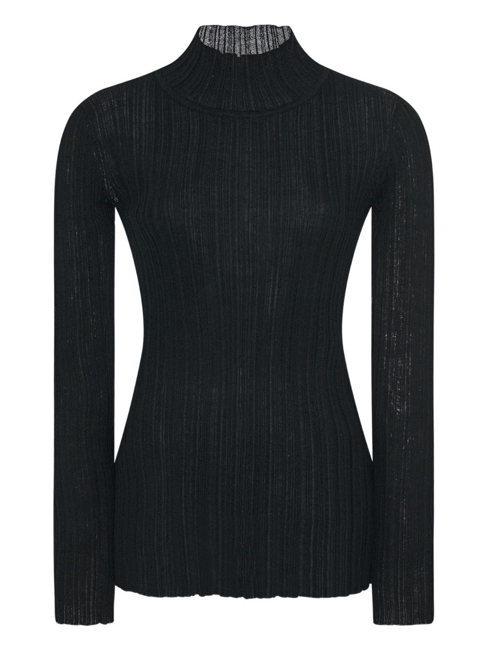 plisse turtleneck sweater Highlights - Black - Plisse texture - High neck - Long sleeves Imported Composition Body: Polyester 70%, Alpaca 30% Washing instructions Dry Clean Only