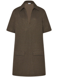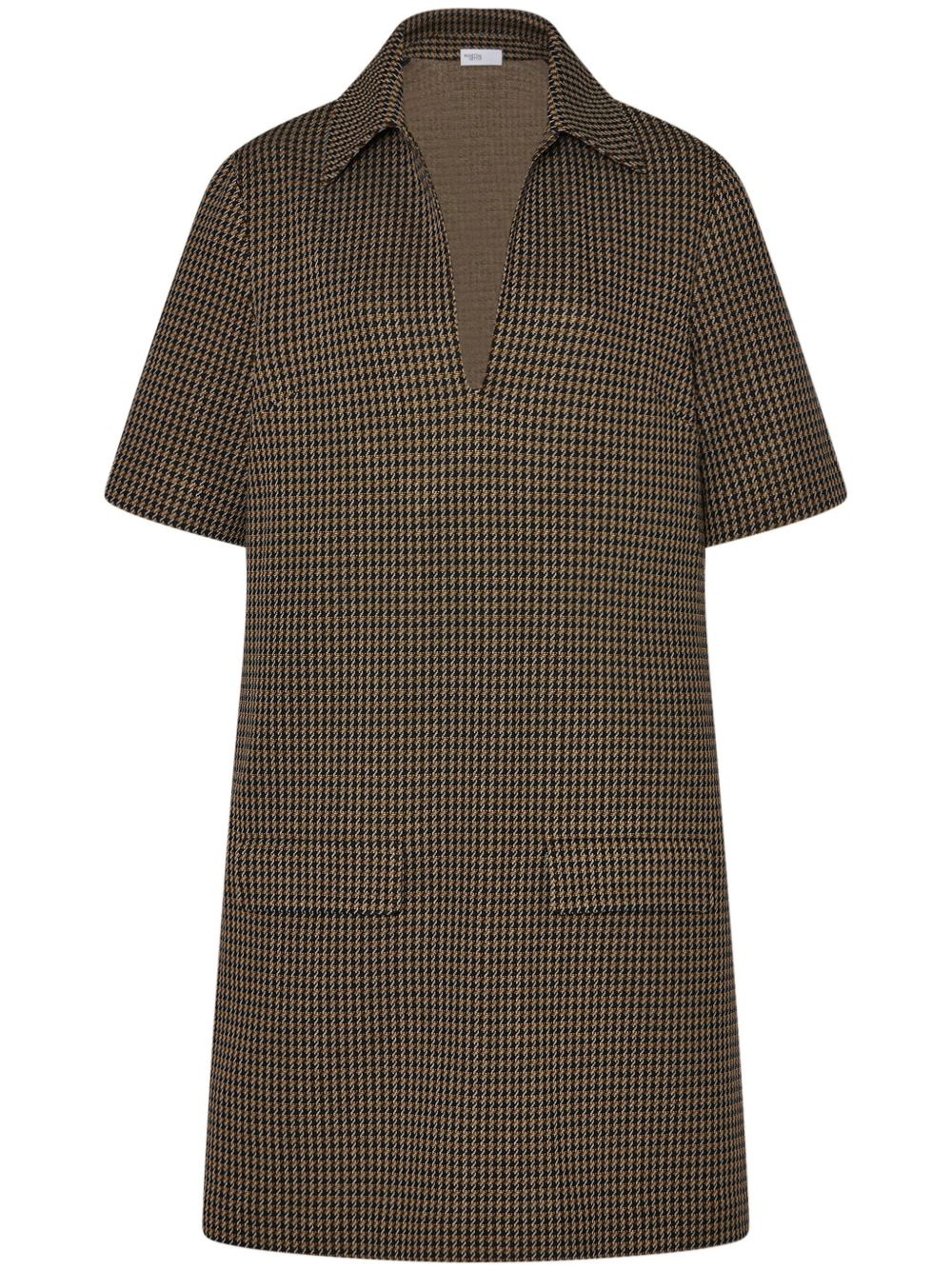 polo-collar houndstooth minidress Highlights - Black/multicolour - Stretch-design - Houndstooth pattern - Check pattern - Polo collar - V-neck - Short sleeves - Two front flap pockets - Thigh-length - Straight hem Made in United States Composition Viscose 81%, Polyamide 18%, Elastane 1%