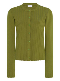 ribbed button-front cardigan Highlights - Green - Button fastening - Round neck - Long sleeves - Ribbed design - Fitted cuffs Imported Composition Viscose 83%, Polyester 17% Washing instructions Read Manufacturer Guidelines