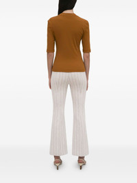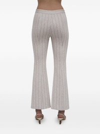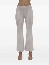 ribbed-knit trousers Highlights - Beige - Elasticated waistband - High-waisted - Flared hem Imported Composition Viscose 81%, Polyamide 18%, Elastane 1%