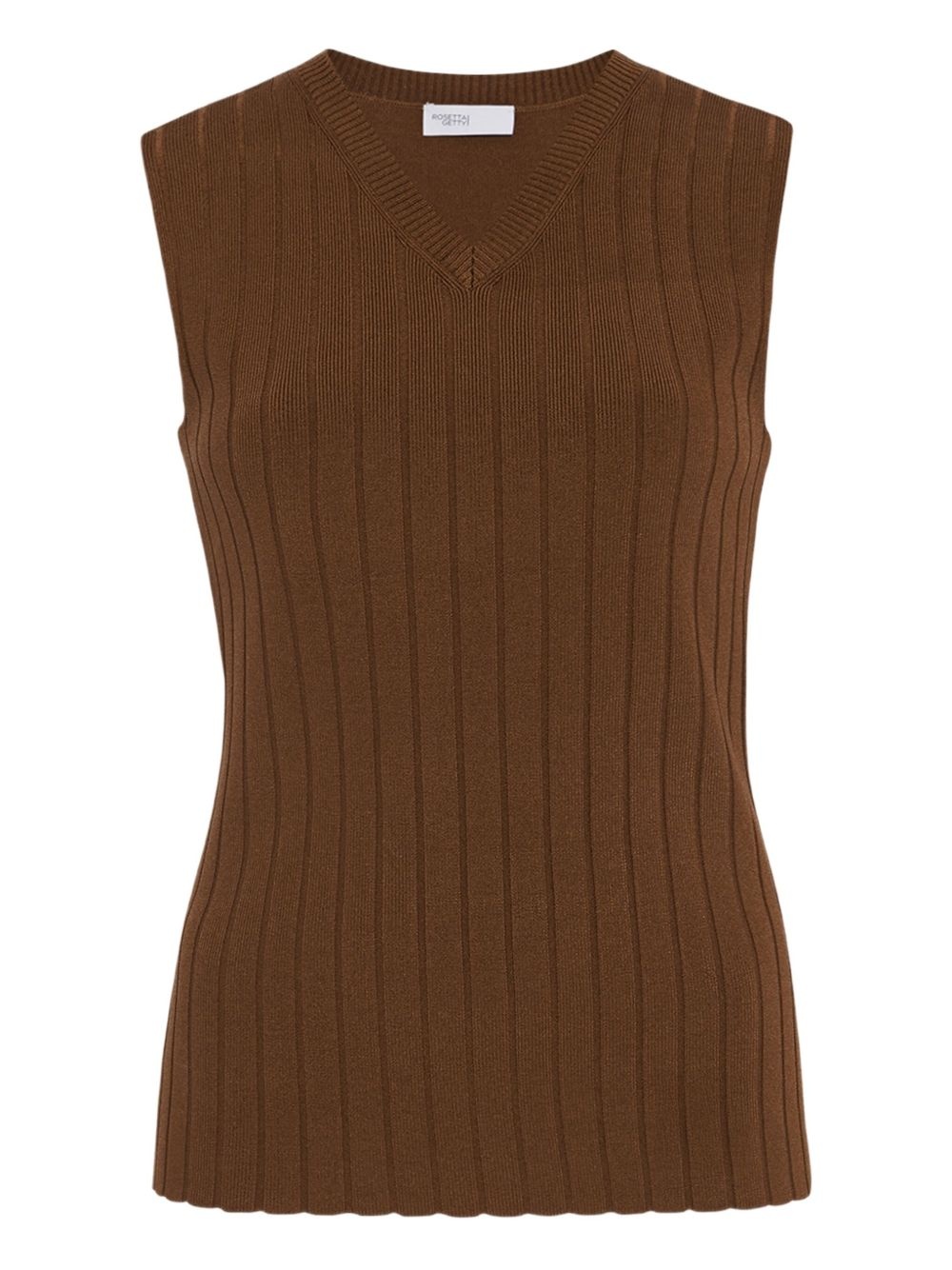 ribbed sleeveless top Highlights - Brown - V-neckline - Fitted design - Ribbed texture - Soft stretch Imported Composition Viscose 83%, Polyester 17% Washing instructions Read Manufacturer Guidelines