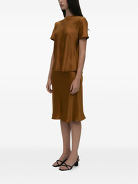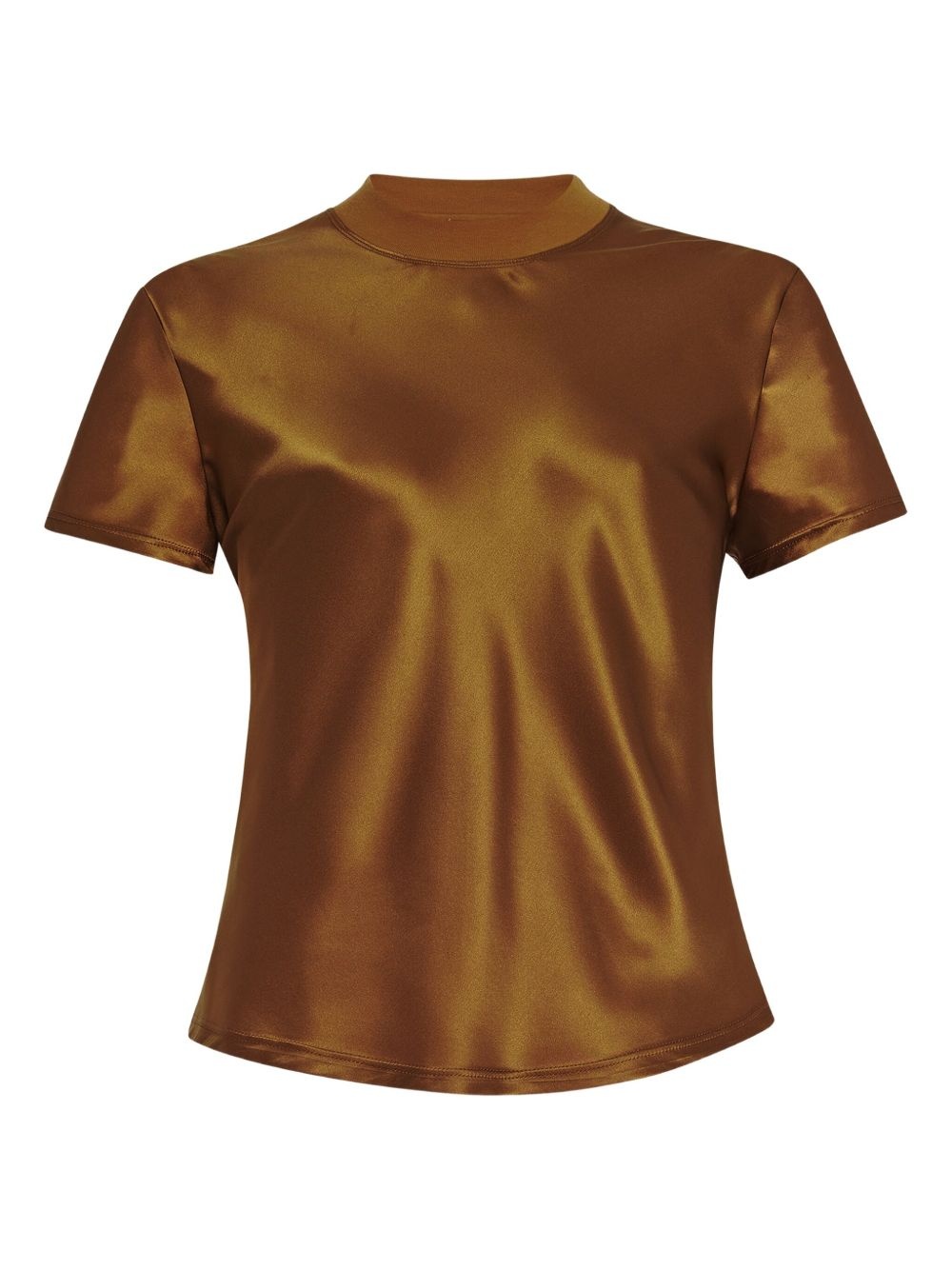 satin-effect short-sleeve top Highlights - Brown - Mock neck - Relaxed fit - Short sleeves - Curved hem Imported Composition Organic Cotton 100% Washing instructions Read Manufacturer Guidelines