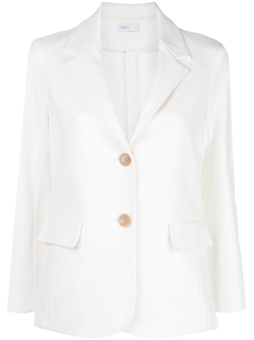 single-breasted blazer Highlights - White - Cotton - Notched lapels - V-neck - Front button fastening - Two front flap pockets - Long sleeves - Straight hem Made in United States Composition Cotton 100% SIZE & FIT Model measurements Height 5 ft 10 in(1.79 m) Bust/Chest 31.1 in(79 cm) Hips 33.85 in(86 cm) Waist 22.83 in(58 cm)