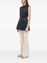 sleeveless asymmetric shirt Highlights - Black - Front button fastening - Side tie fastening - Classic collar - Fitted waistline Made in United States Composition Cotton 97%, Elastane 3%