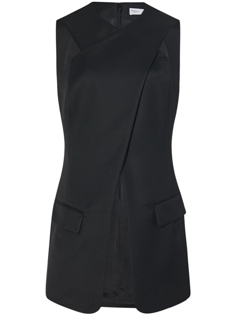 tailored cross-front top Highlights - Black - Wool blend - Tailored design - Cross shoulder straps - Concealed rear zip fastening - Halterneck - Front flap pockets - Straight hem Made in United States Composition Wool 60%, Viscose 40%