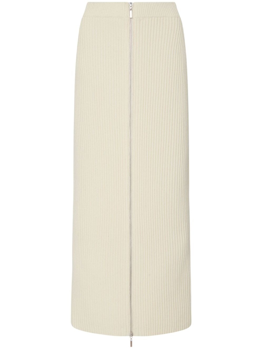 wool-cashmere skirt Highlights - White - Wool-cashmere blend - Ribbed knit - Front two-way zip fastening - Elasticated waistband - Straight hem - Ankle-length Imported Composition Mercerized Wool 70%, Cashmere 30%