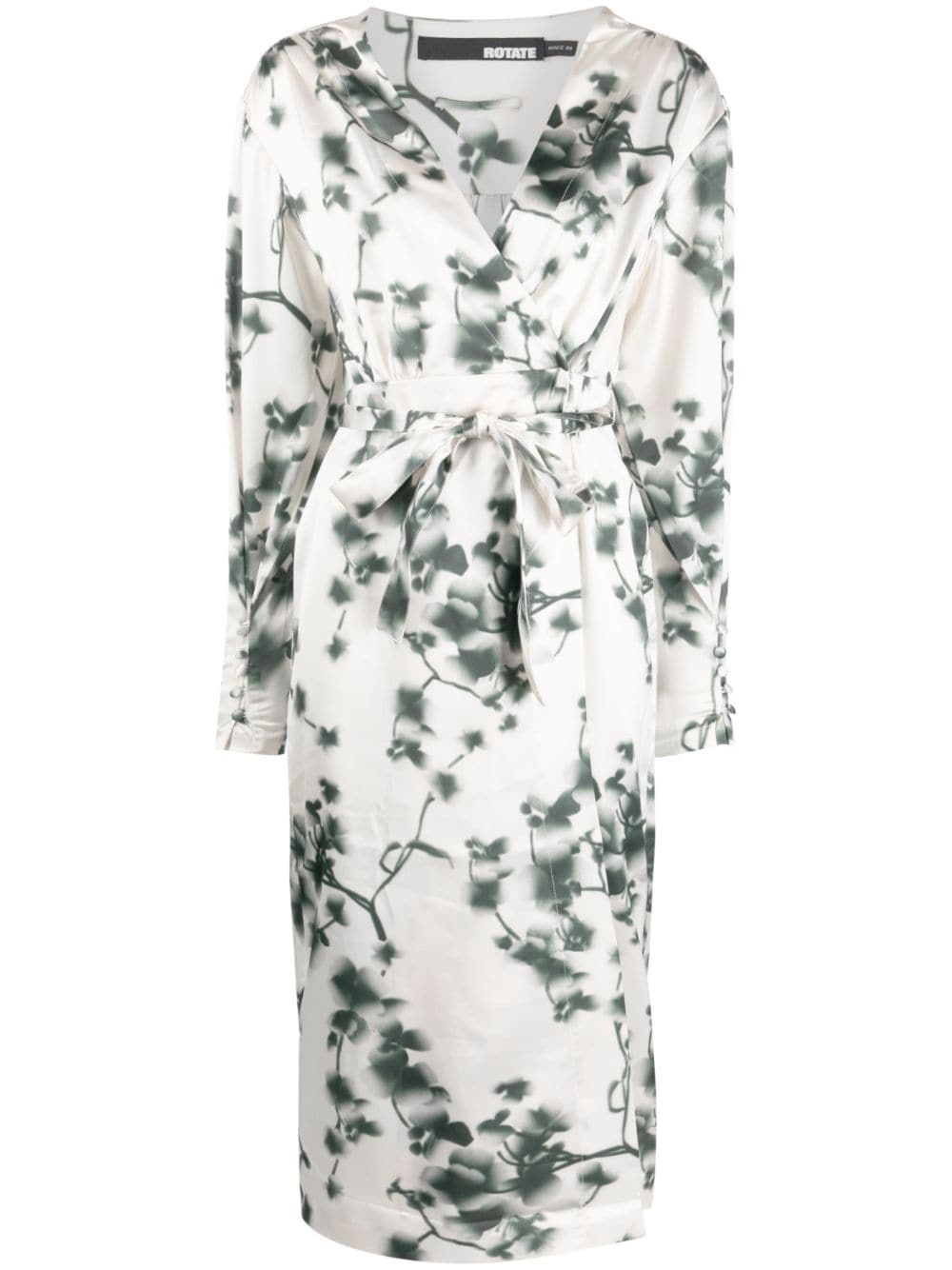 abstract floral-print midi dress ROTATE BIRGER CHRISTENSEN imbues an effortless style into this wrap dress for SS23. An abstract floral print is hosted upon the V-neck silhouette which features a tied waist that allows the wearer to subtly alter the shape of the piece. Highlights - White - Grey - Recycled polyester blend - All-over floral print - Wrap design - V-neck - Tied waist - Long sleeves - Below-knee length Imported Composition Recycled Polyester 50%, Polyester 47%, Spandex/Elastane 3% SIZE & FIT Model measurements Height 5 ft 10 in(1.79 m) Bust/Chest 31.1 in(79 cm) Hips 35.03 in(89 cm) Waist 24.01 in(61 cm) Washing instructions Machine Wash